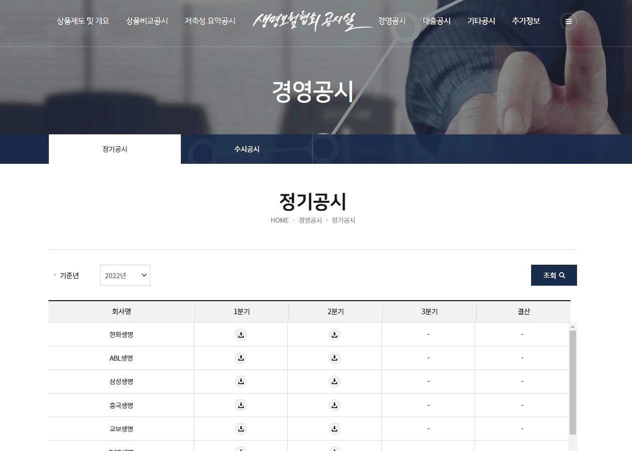 정기공시 : 생명보험협회 공시실 (insure.or.kr)